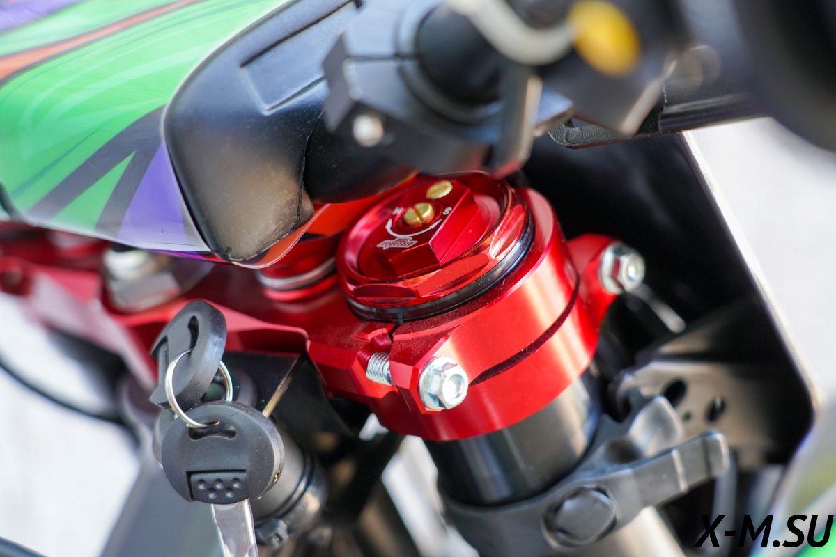 Двигатель T7 – мощный, технологичный и тяговитый 4-х тактный Zonsen ZS174MN-5A (NB300). Рабочий объём 300сс, 4-клапанная ГБЦ, водяное охлаждение. Минимальные вибрации благодаря наличию балансирного вала. Система питания – проверенный карбюратор Nibbi Racing PWK34. Все это позволило снять внушительные 30 л.с. при 8500 об. в мин. и 22 Нм при 7500 об. в мин. Коробка передач – механическая 6 ступенчатая, запуск – только электростартером. Мотор очень эластичный, с отличными показателями крутящего момента на низах и верхах. А легендарная надежность завода моторов ZONSEN, удобство в обслуживании и доступность запчастей в представлении не нуждается!